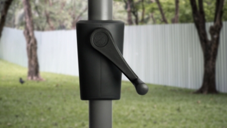 Secure it firmly before opening, then use the crank handle to lift and lower the canopy smoothly.