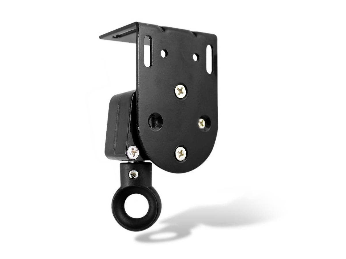 The Idle Bracket Assembly, Left/Right Wall Mount in Black, is an idle end unit pre-configured for wall-mount installation and is suitable for both corded and cordless Coolaroo Outdoor Roller Shades.