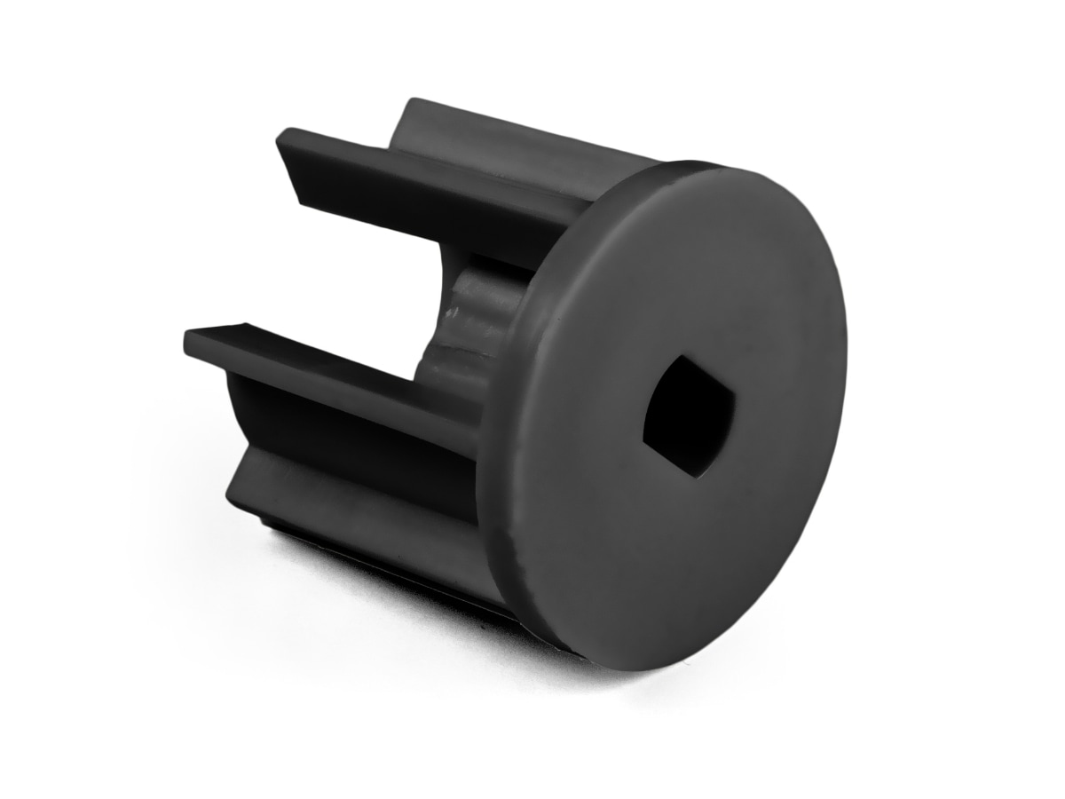 The Wand Bracket Assembly, Left Wall in Black, is a cordless crank unit pre-configured for right-side installation of Coolaroo Outdoor Roller Shades and requires a wand, sold separately, for operation.