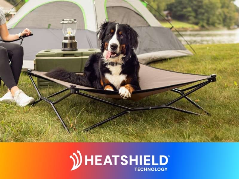 Create a dramatically cooler surface for your sun-loving companion with the On-The-Go Elevated Dog Bed replacement cover plus HeatShield™ fabric technology.