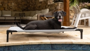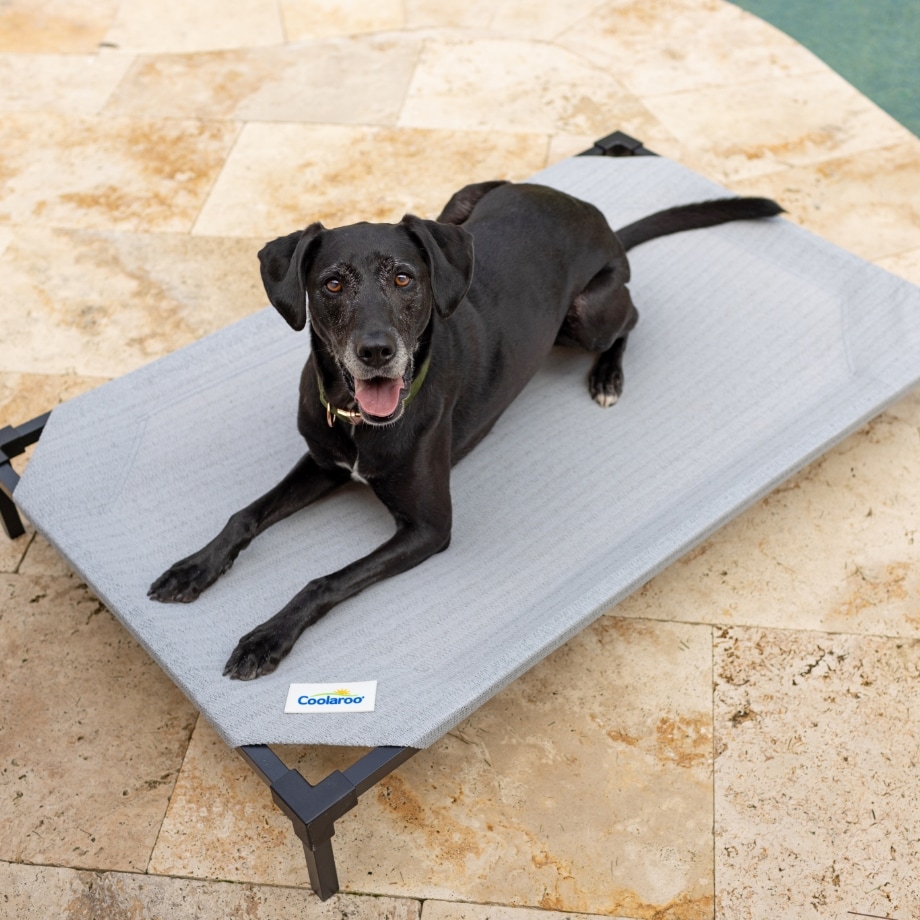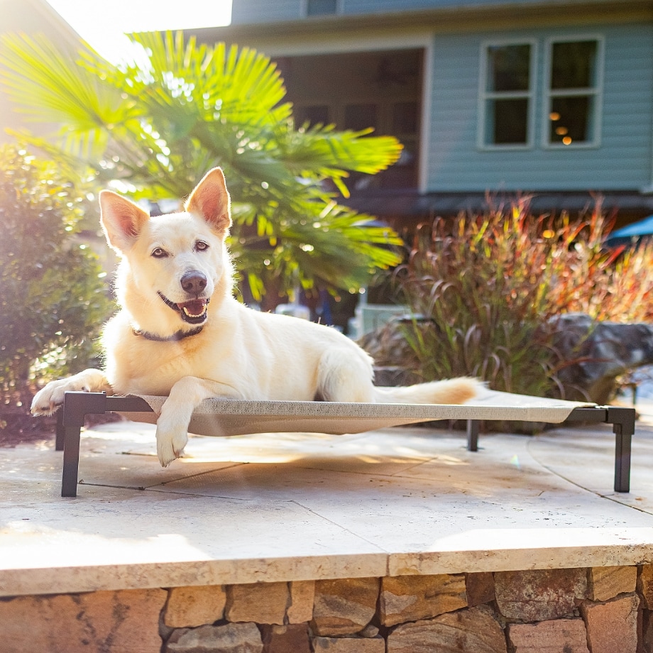 The Pro Elevated Bed with HeatShield™ cover is designed for both indoor and outdoor use. It has UV-resistant fabric that maintains its cooling properties and appearance for up to five years.