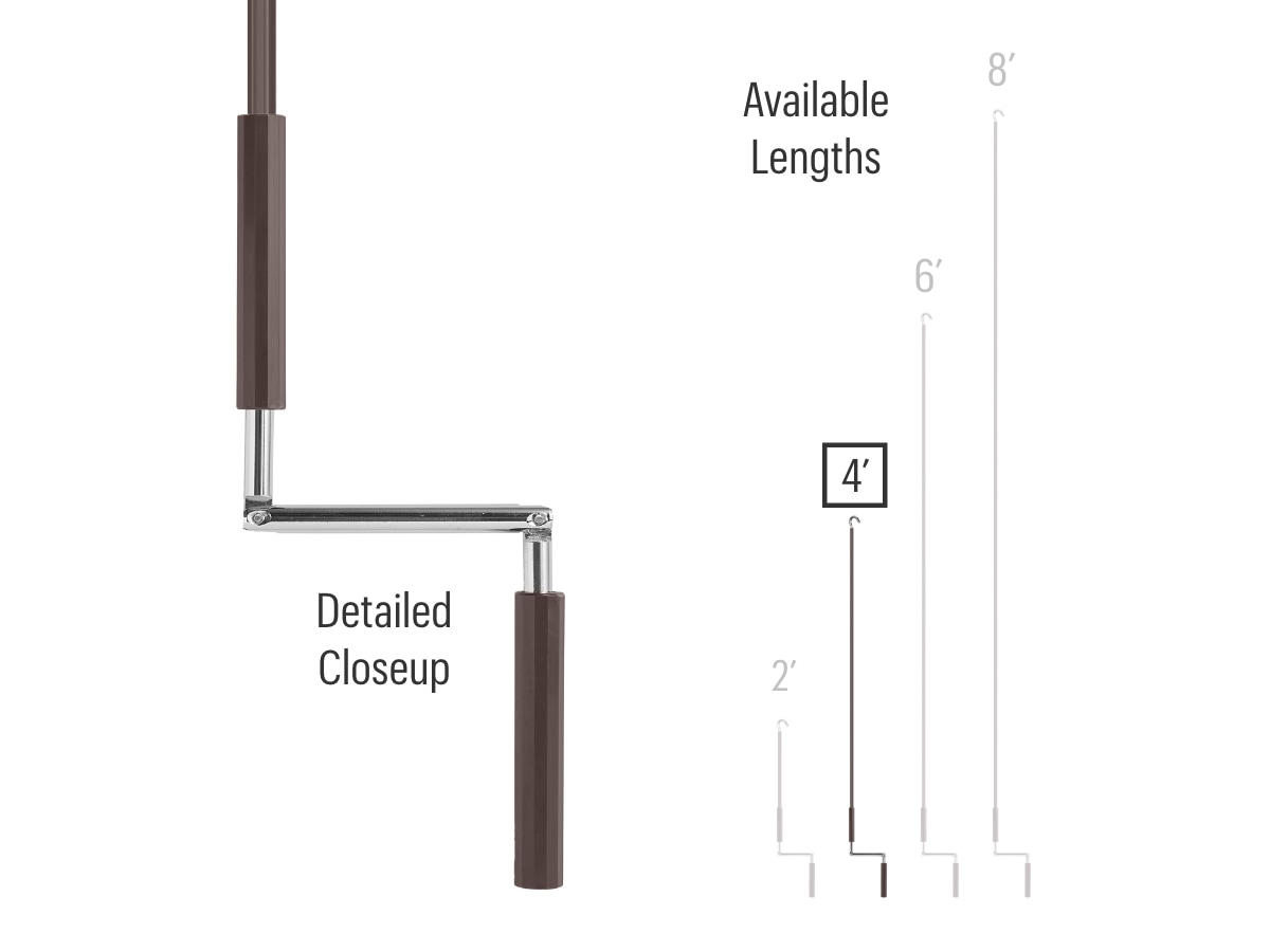 This crank-style mechanism features a lengthy, removable wand that smoothly raises and lowers the shade with minimal effort.