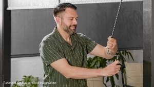 This crank-style mechanism features a lengthy, removable wand that smoothly raises and lowers the shade with minimal effort.