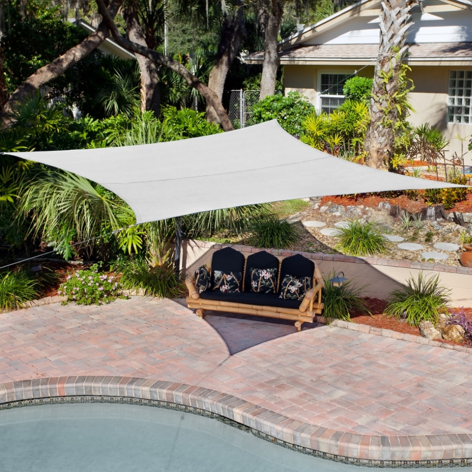 Whatever your vision or preferred shape, our shade sail kit can support up to a 17’9” space to cover substantial outdoor areas with architectural elegance, offering up to 95% UV block under cooling, neutral tones designed to complement any existing décor.