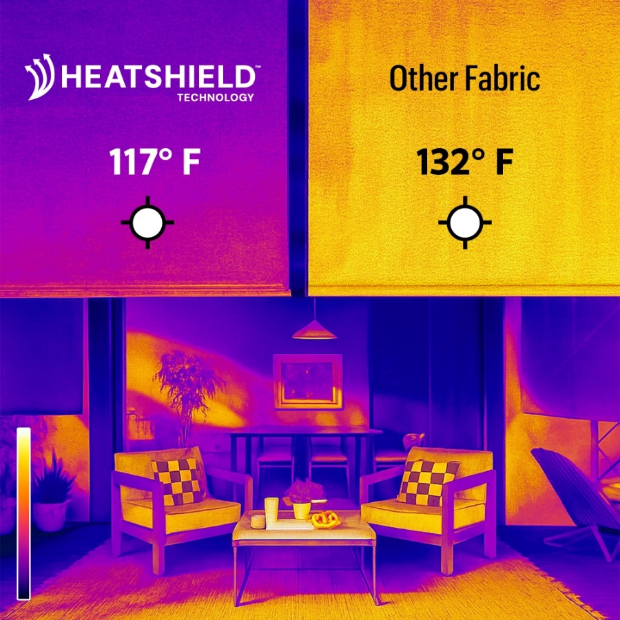 Our revolutionary fabric reflects the sun's infrared rays (the ones that feel hot), so you can enjoy backyard brunches, afternoon playdates, and evening gatherings without the discomfort of radiant heat.